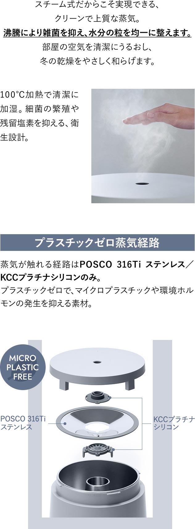 加熱式は電気代が高そう ご安心くださいSTENAはスチーム式なのに1日10時間でも約30円の省エネ設計 沸騰音、水飛びを防ぐスチーム圧制御バルブを搭載